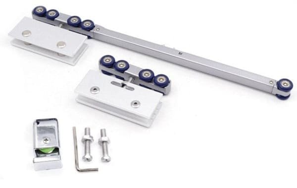 What components are included in a complete glass sliding door pulley system when I procurement from China?